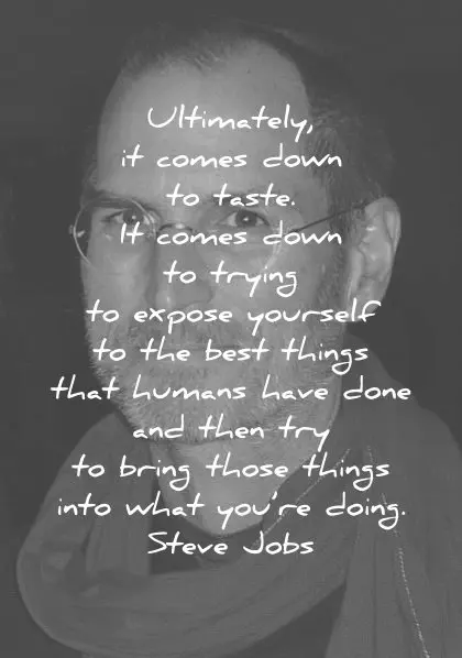 Sau cùng, nó truyền xuống hương vị. Nó truyền xuống để cố gắng thể hiện bản thân vào những thứ tốt nhất mà con người đã làm và kế tiếp là cố gắng mang nhưng thứ như thế vào những gì bạn đang làm. ~ Steve Jobs