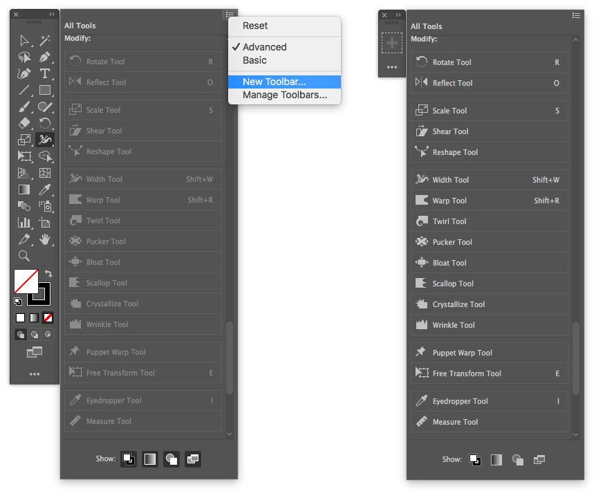 - Chọn nút New toolbar trong menu panel của thanh All Tools