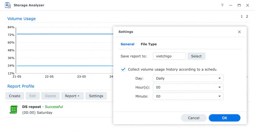 Synoreport là thư mục hệ thống, lưu các file báo cáo tình trạng ổ DS