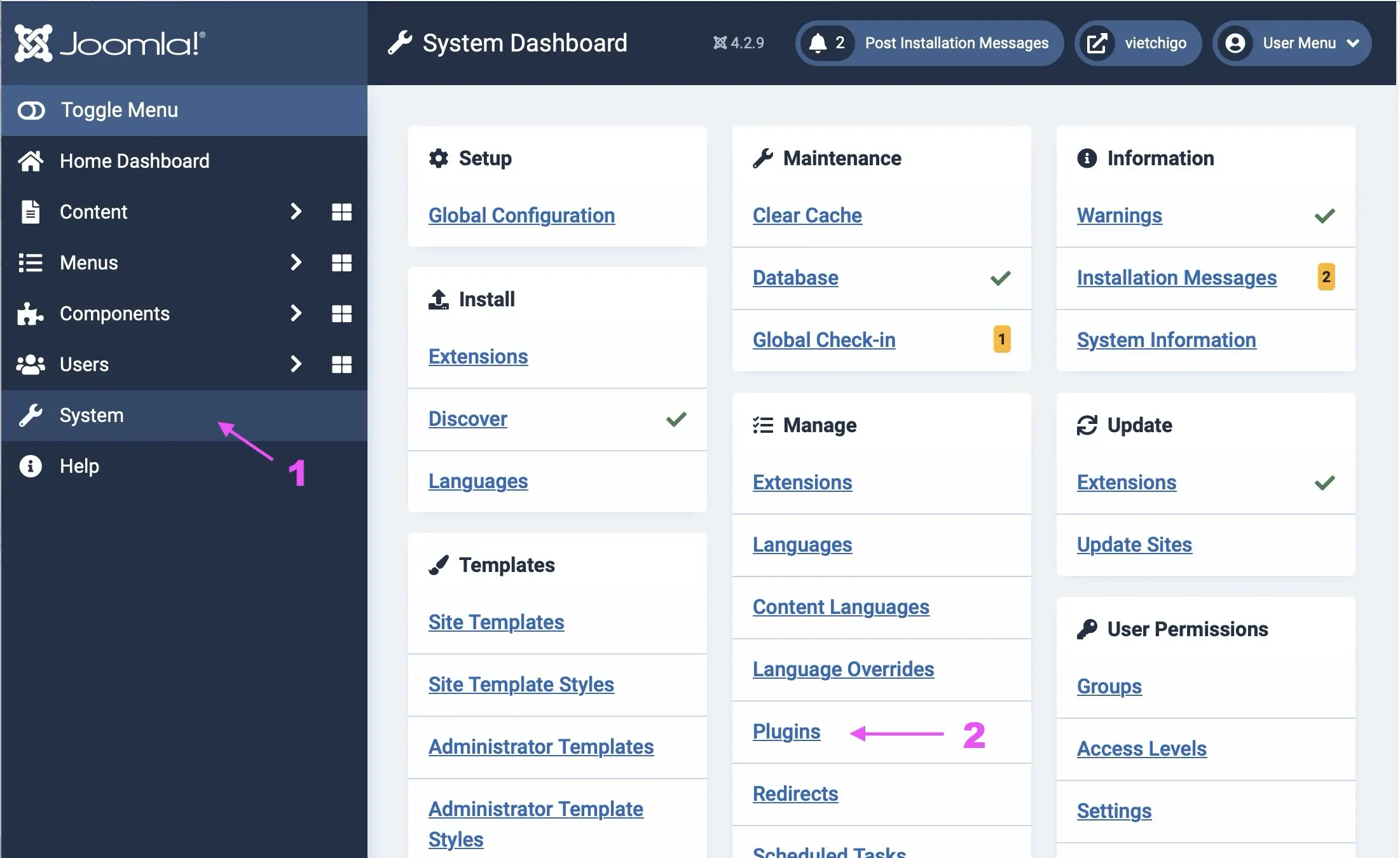 Bước 2 - Trong Plugins, tìm Editor - TinyMCE