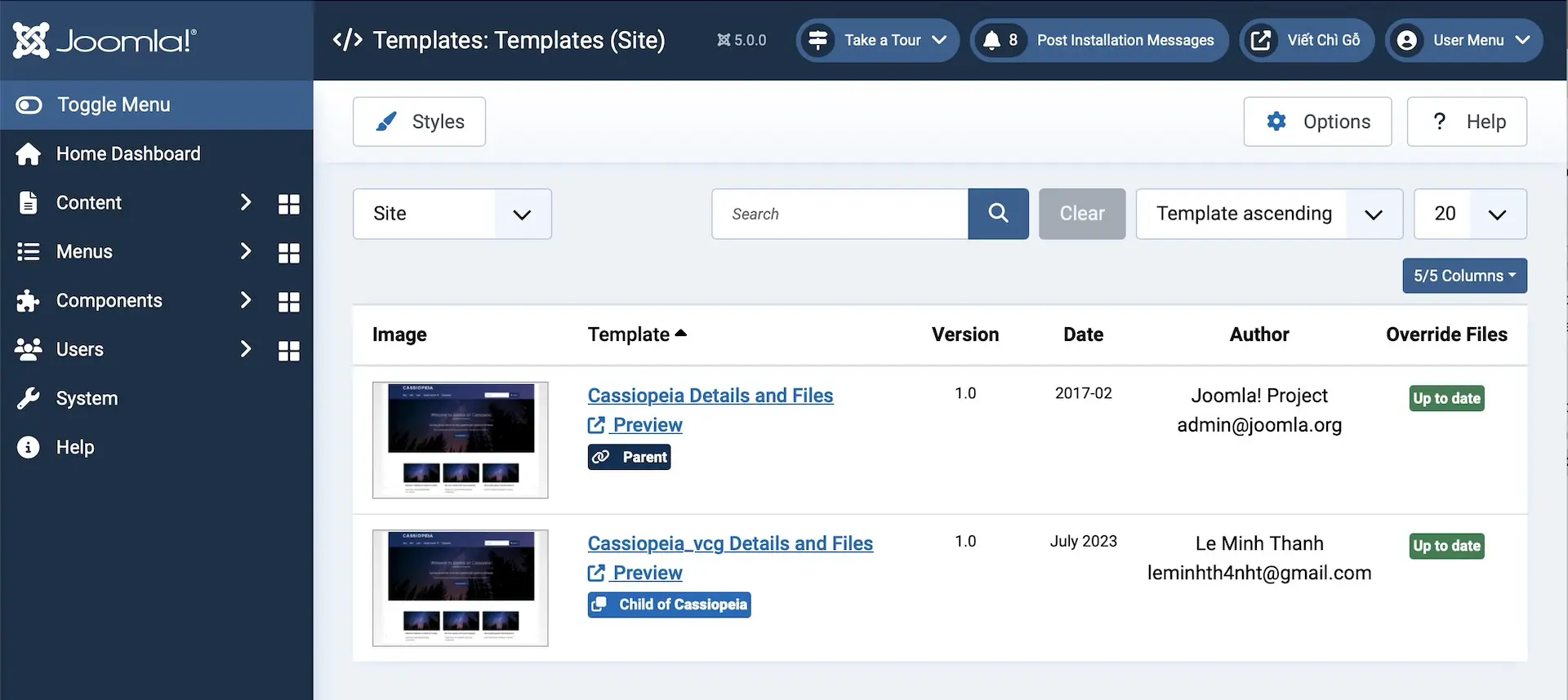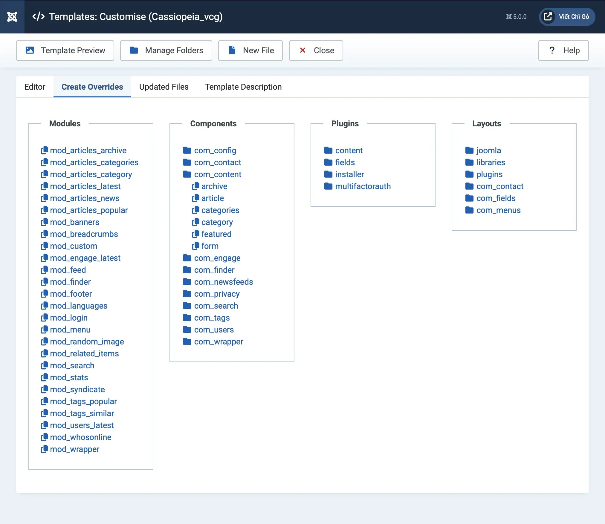 Từ đây bạn có thể tạo Template Child hoặc chỉnh sửa Overrides