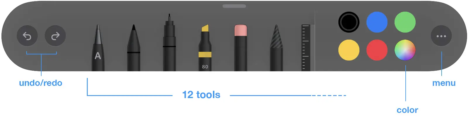 Khi tap lên icon Draw, sẽ xuất hiện thanh công cụ dưới đây