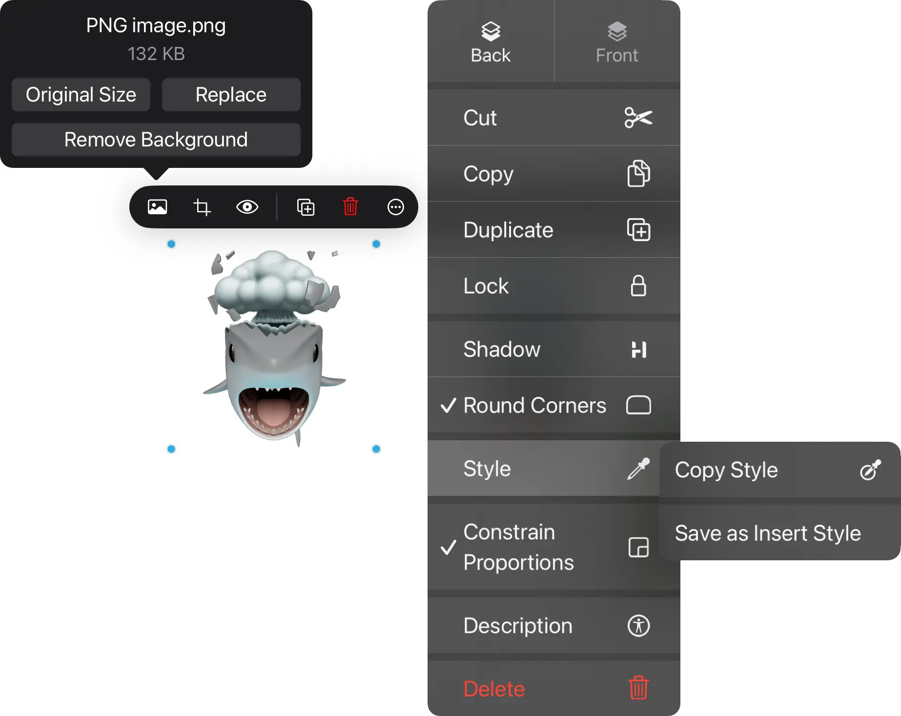 - Chọn ảnh và hình shape - tap giữ ngón tay lên màn hình khoảng 1s rồi drag khung bao chọn 2 hình