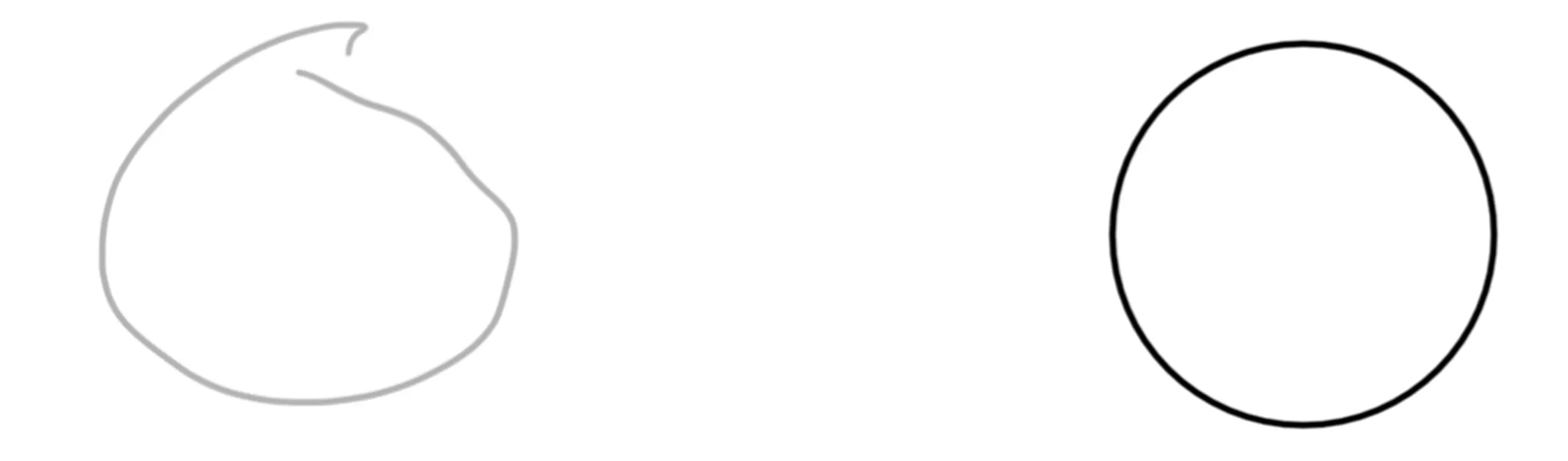 Vẽ các mảng hình học cơ bản: vẽ hình tròn, hình vuông, tam giác và giữ nguyên đầu viết chạm lên màn hình khoảng 2s, nét vẽ sẽ tự chỉnh thành các hình chuẩn