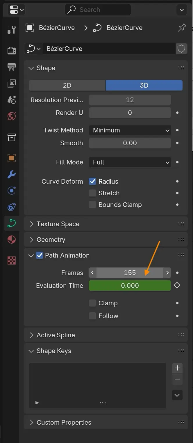 - Kiểm chọn Follow Curve, nếu muốn đối tượng chuyển động xoay theo đường curve