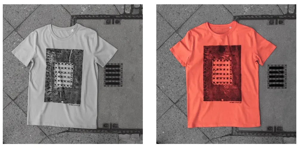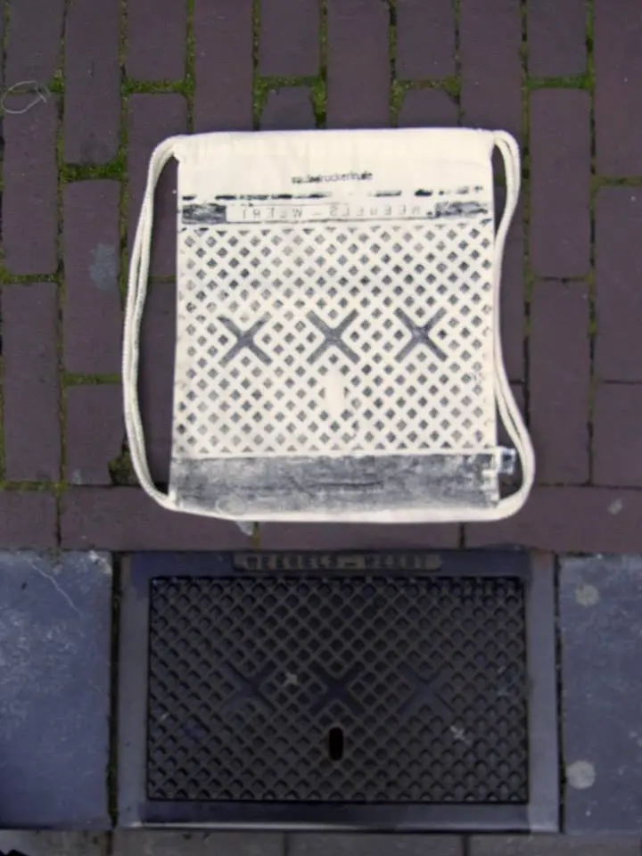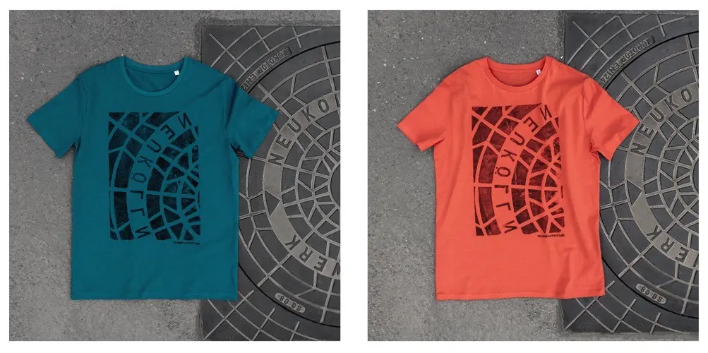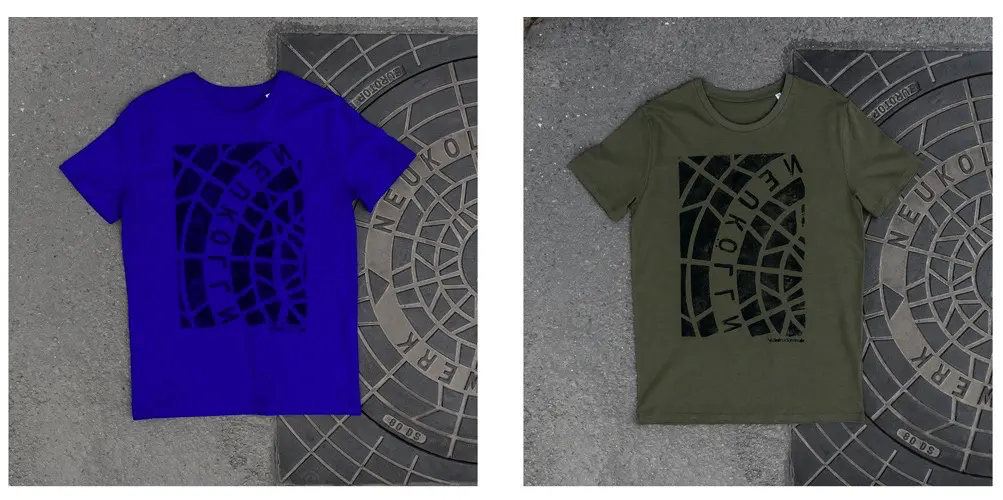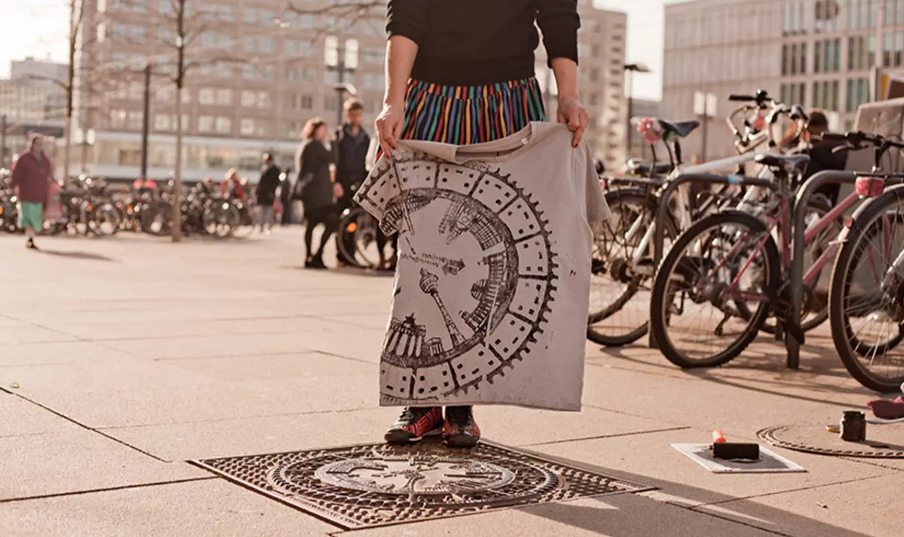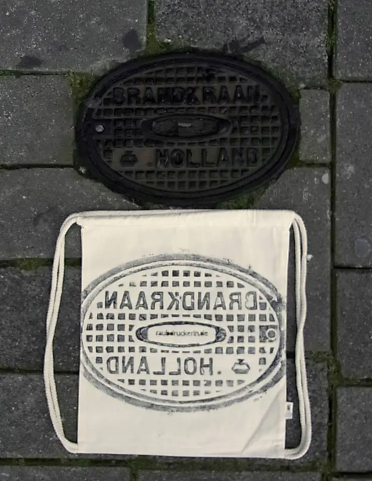 Bộ sưu tập độc đáo của nhóm nghệ sĩ người Đức có tên là Raubdruckerin là các mẫu áo thun, túi xách,.. được in bằng phương pháp cực kỳ thô sơ và ít tốn kém nhất: mực, con lăn, mảnh thiết và... nắp cống trên đường phố