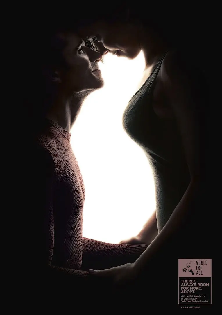 Để giúp nâng cao nhận thức về nuôi con nuôi tại Mumbai, tổ chức phi chính phủ thế giới For All đã giao nhiệm vụ cho cơ quan McCann Worldgroup sáng tạo ra một chiến dịch bằng các ấn phẩm nhằm "gây phong trào cho sự sống chung giữa những động vật hoang dã và người Mumbai, bằng cách tìm những ngôi nhà yêu thương cho người bất lực và tạo lòng từ bi, khoan dung và nhân đạo cho những người trên đường phố ".