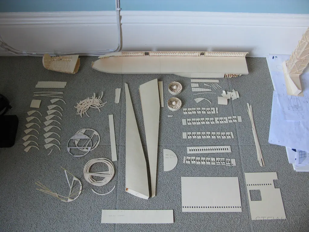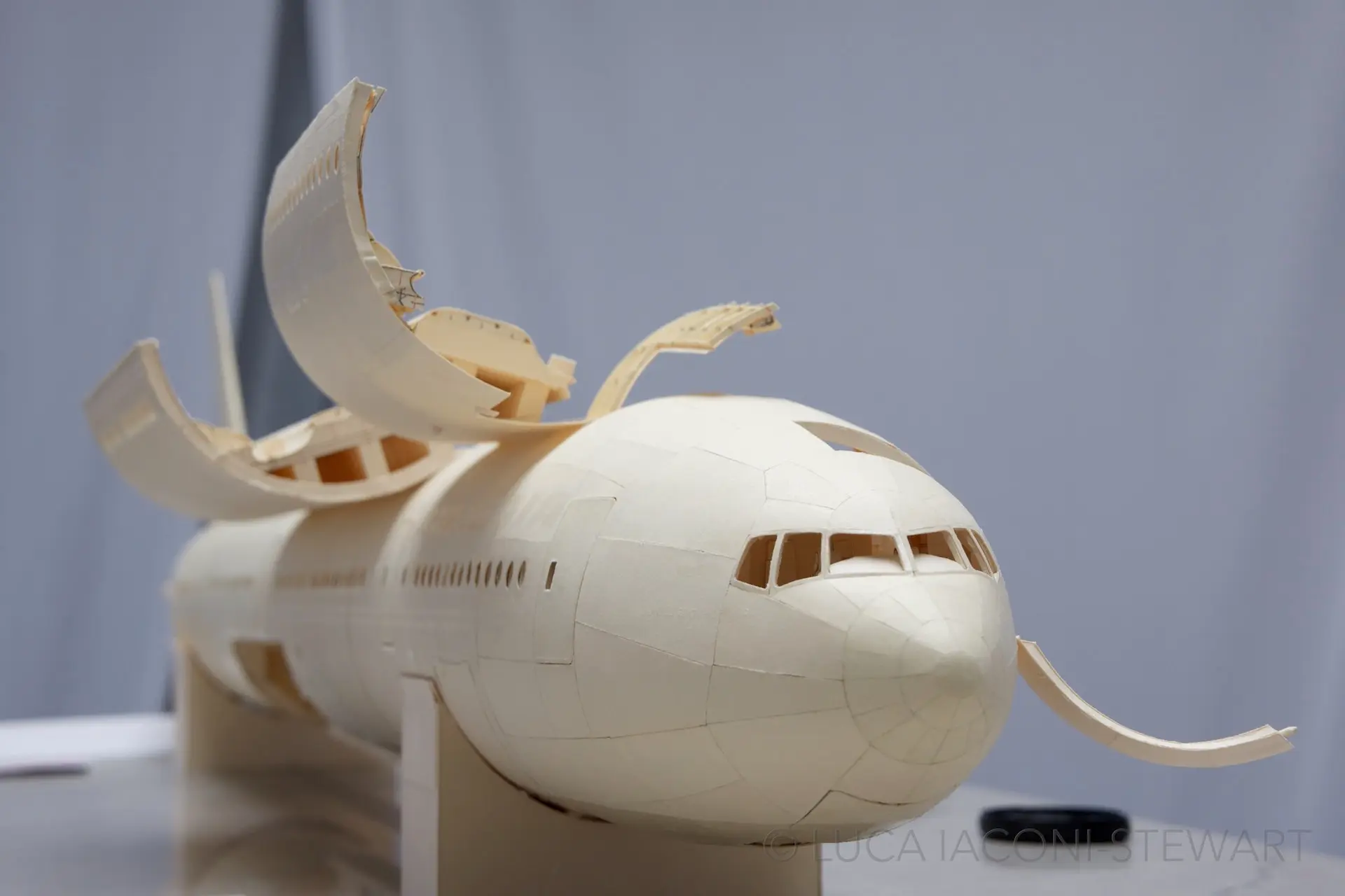 Sau khi được lấy cảm hứng từ một lớp kiến trúc năm 2008, Iaconi-Stewart bắt đầu công việc chế tạo toàn bộ Boeing 777, không chỉ lớp vỏ máy bay mà còn lấp đầy cấu trúc bên trong với tỉ lệ 1:60 với mức độ chi tiết phức tạp, bao gồm cả những chỗ ngồi, ngăn không gian, phòng vệ sinh và các cửa hàng vận chuyển hàng hóa.