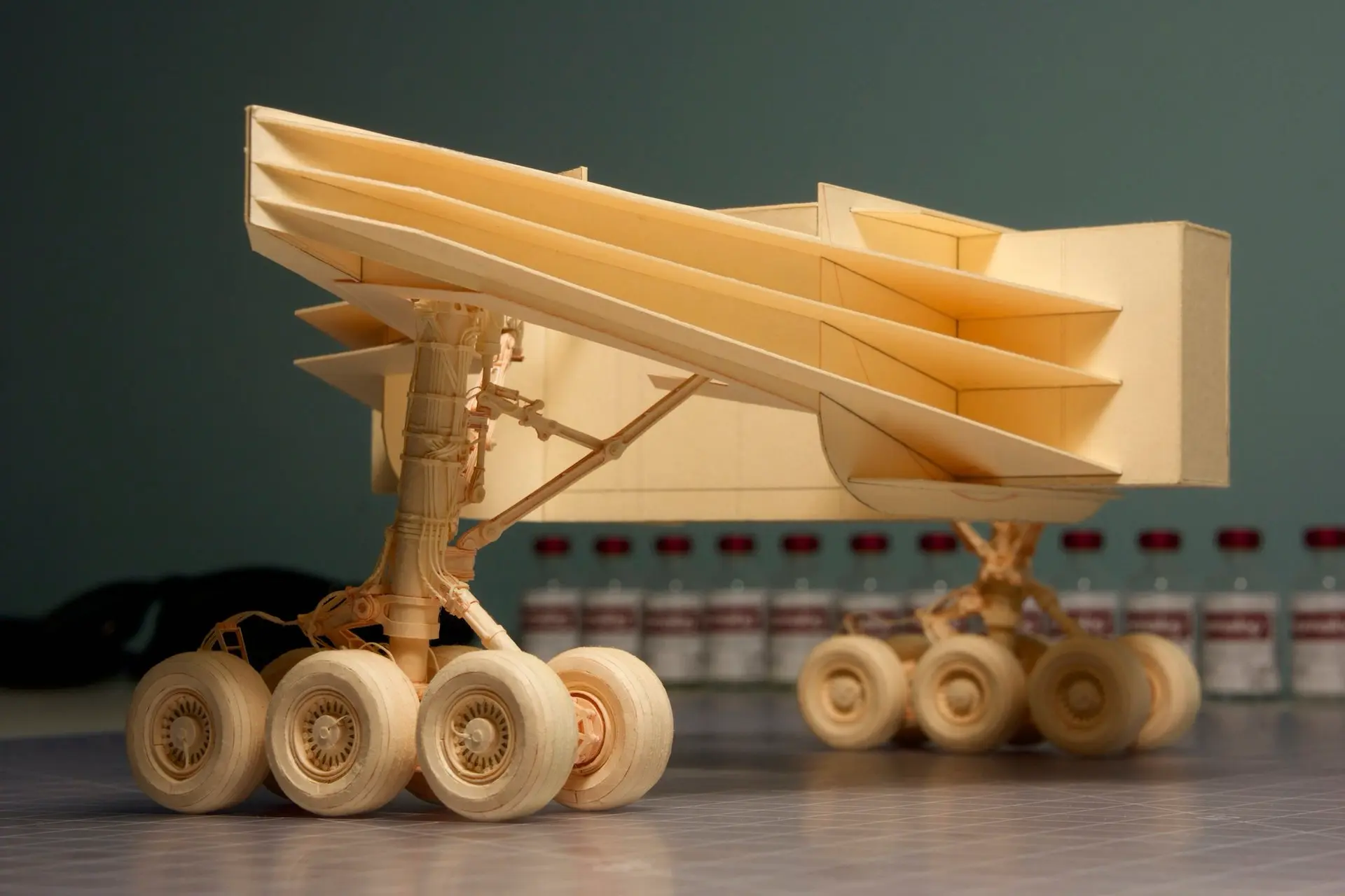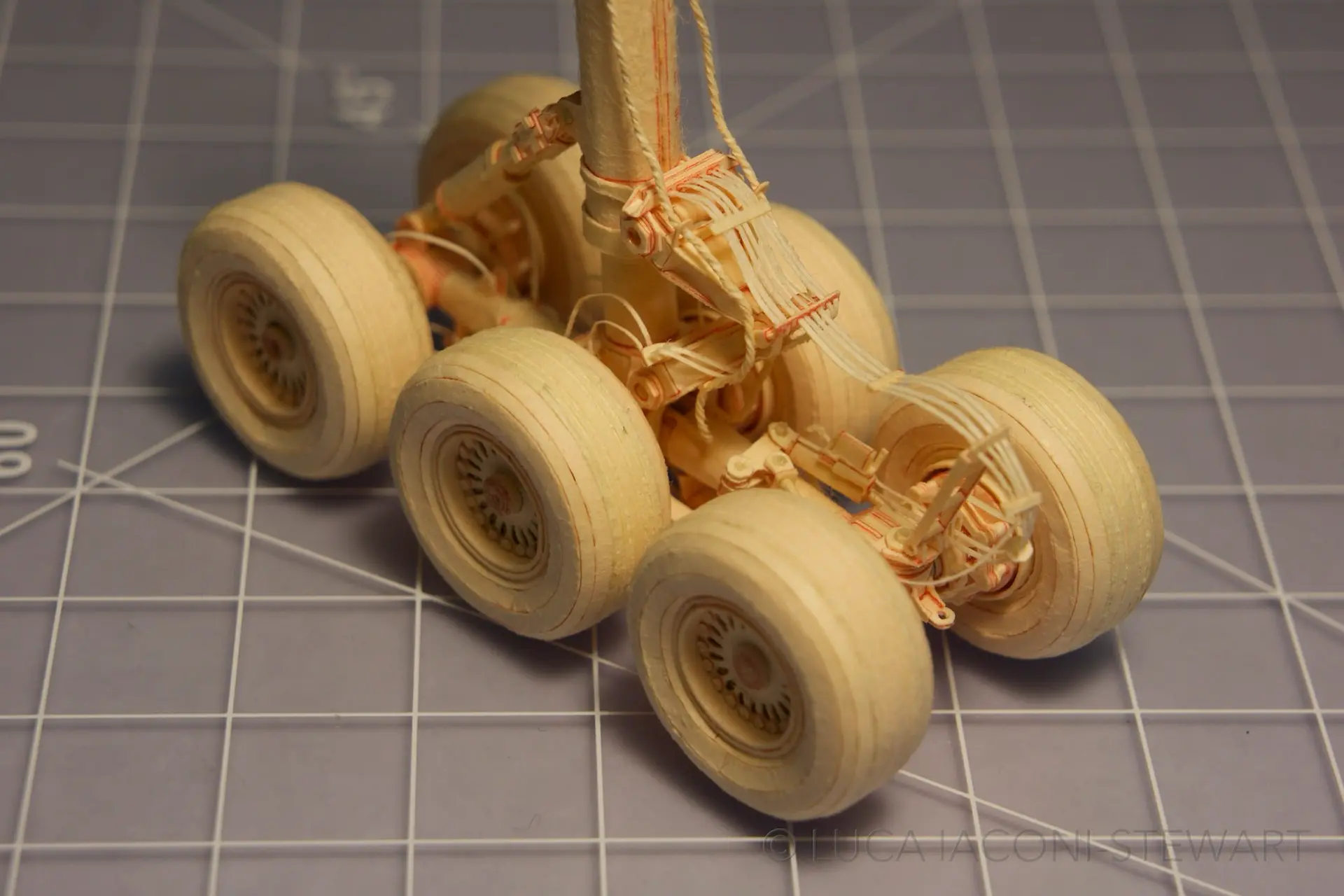 Chi tiết ấn tượng nhất ở ở hình này chính là đôi cánh và càng hạ cánh. Chắc hẳn Iaconi-Stewart đã phải mất rất nhiều đêm không ngủ để lắp ráp những chiếc bánh xe, vành bánh xe, thanh chống và rất nhiều chi tiết phức tạp khác. Anh cho biết một khi chiếc Boeing 777 được hoàn thành, Luca sẽ bắt tay vào một dự án khác, một chiếc máy bay khác với kích thước lớn hơn.