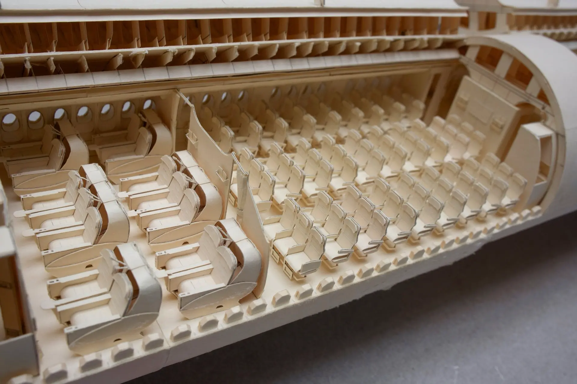 Iaconi-Stewart cho biết anh đã dành cả mùa hè vừa rồi để làm nội thất cho mô hình máy bay. Thời gian để làm mỗi chiếc ghế ở hạng Economy mất 20', ghế ở khoang Business là 4 tiếng, và 8 tiếng cho khoang hạng nhất.