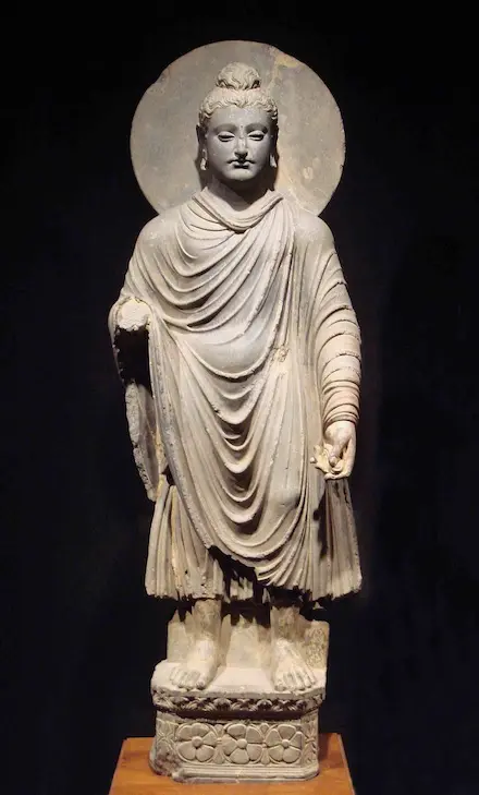 Hình ảnh Đức Phật trong hình dáng con người được thực hiện đầu tiên bởi các nghệ sĩ của Kushan Gandhara. Bức tượng này được điêu khắc vào TK thứ 2 hoặc thứ 3 TCN, hiện tại đang được trưng bày ở Bảo tàng Quốc Gia Tokyo. Bức tượng đôi khi được cho là theo phong cách nghệ thuật Hy Lạp cổ nhưng về phía bảo tàng Nhật Bản khẳng định nó thuộc phong cách La Mã cổ đại.