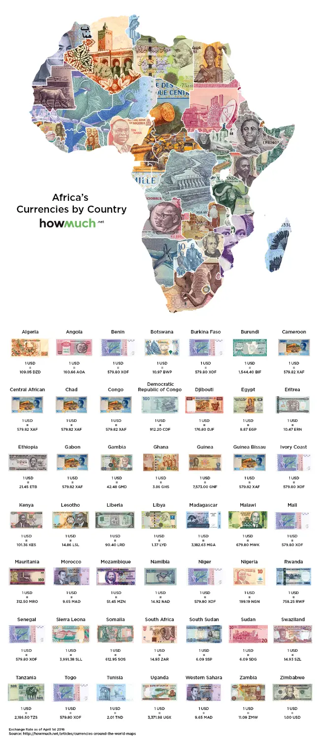 BẢN ĐỒ TIỀN TỆ CỦA 49 QUỐC GIA KHU VỰC CHÂU PHI