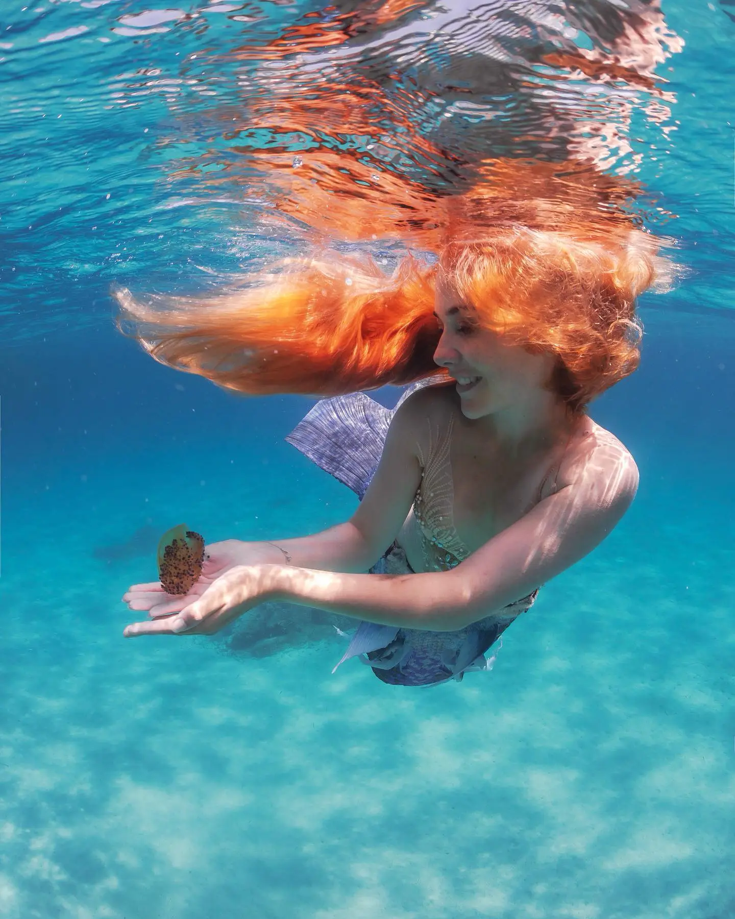 Người mẫu tóc đỏ Alexia Greco tươi trẻ với cái đuôi cá dài duyên dáng là nguồn cảm hứng cho nhiều hoạ sĩ, điêu khắc gia