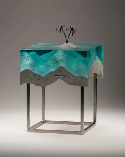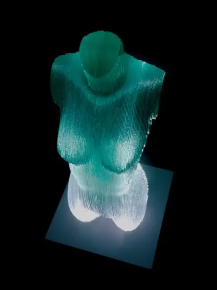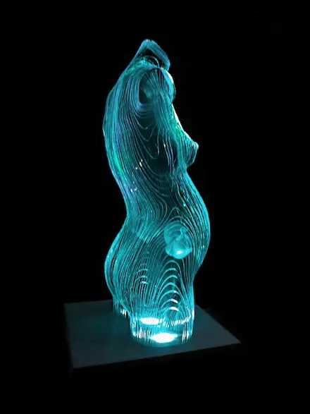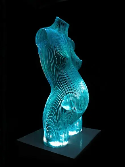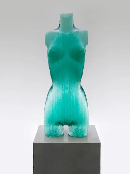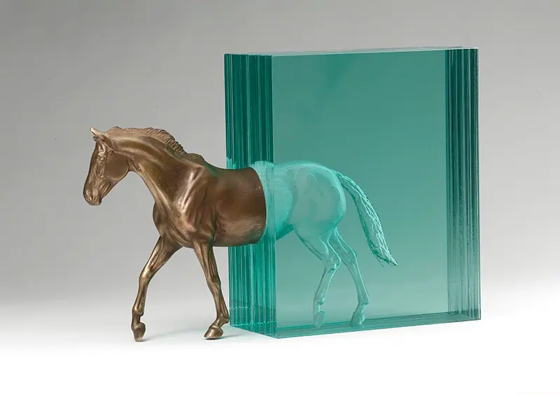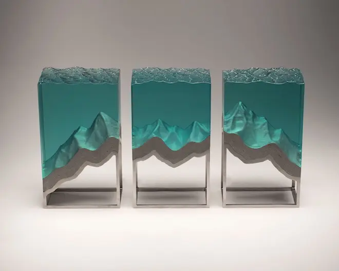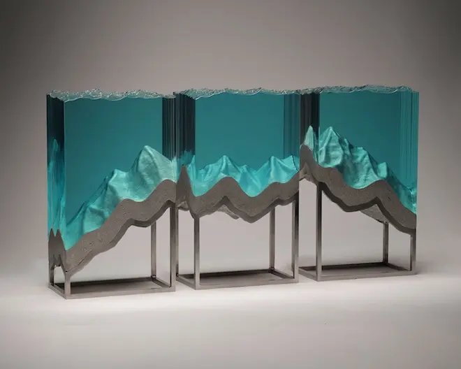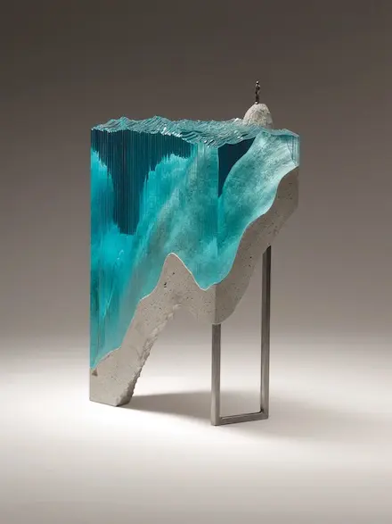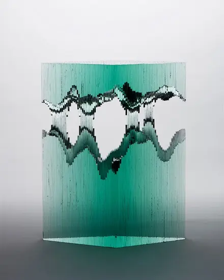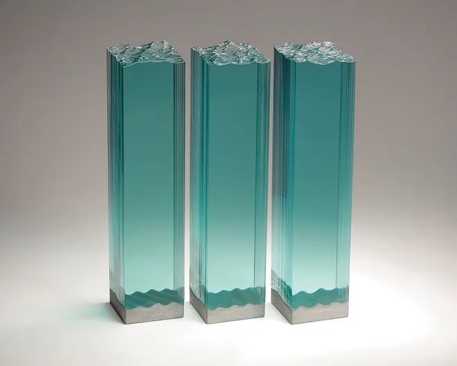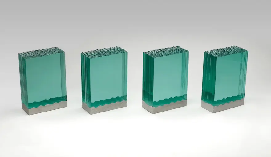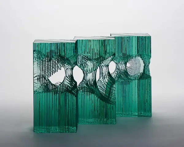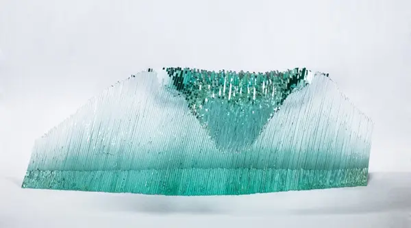 Chúng ta tiếp tục thưởng ngoạn các tác phẩm điêu khắc tuyệt vời với chất liệu chủ yếu là các tấm kính màu xanh trong suốt