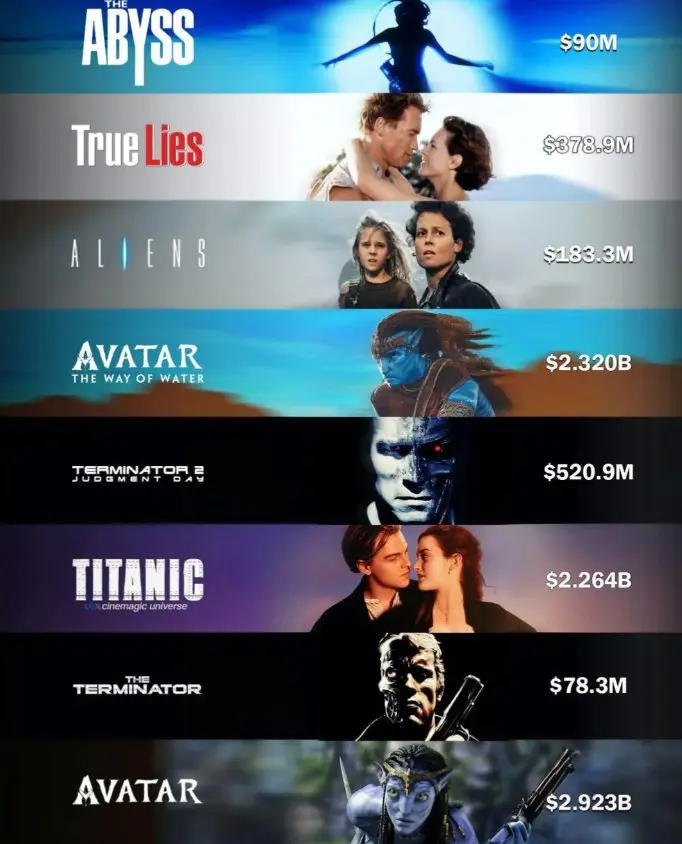 - Dự Án Tham Vọng Nhất Hollywood Cameron đang sản xuất 4 phần tiếp theo của Avatar với ngân sách ước tính hơn 1 tỷ USD, dự kiến ra mắt đến năm 2031. Đây là một trong những dự án táo bạo và tốn kém nhất trong lịch sử điện ảnh.