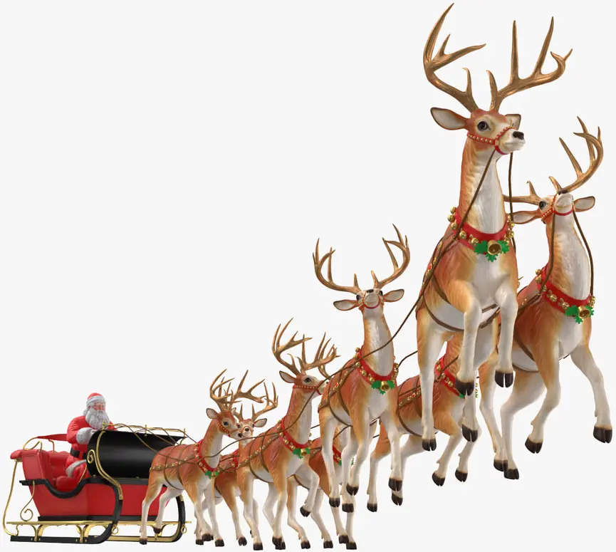 - Tuần lộc - reindeer: Lưu ý là có 9 hay 8 con tuần lộc kéo một cổ xe trượt, tóm lại là... không có bánh xe.