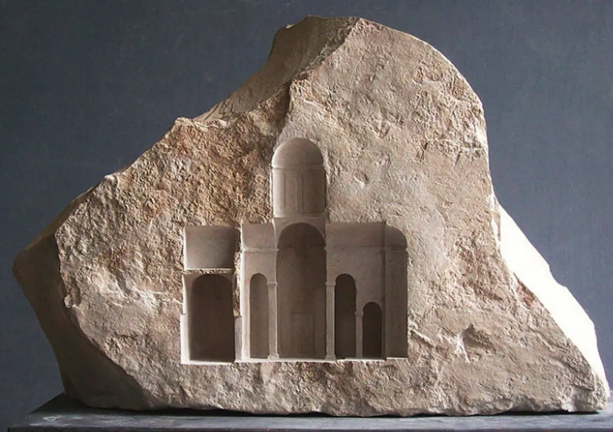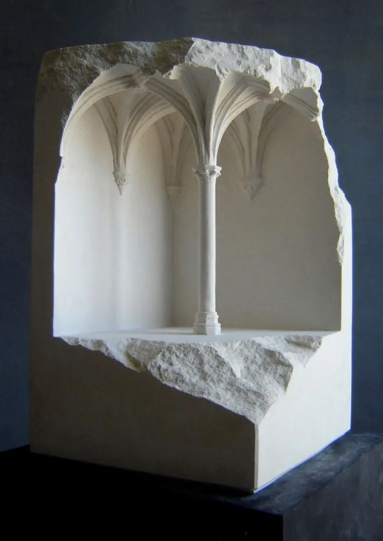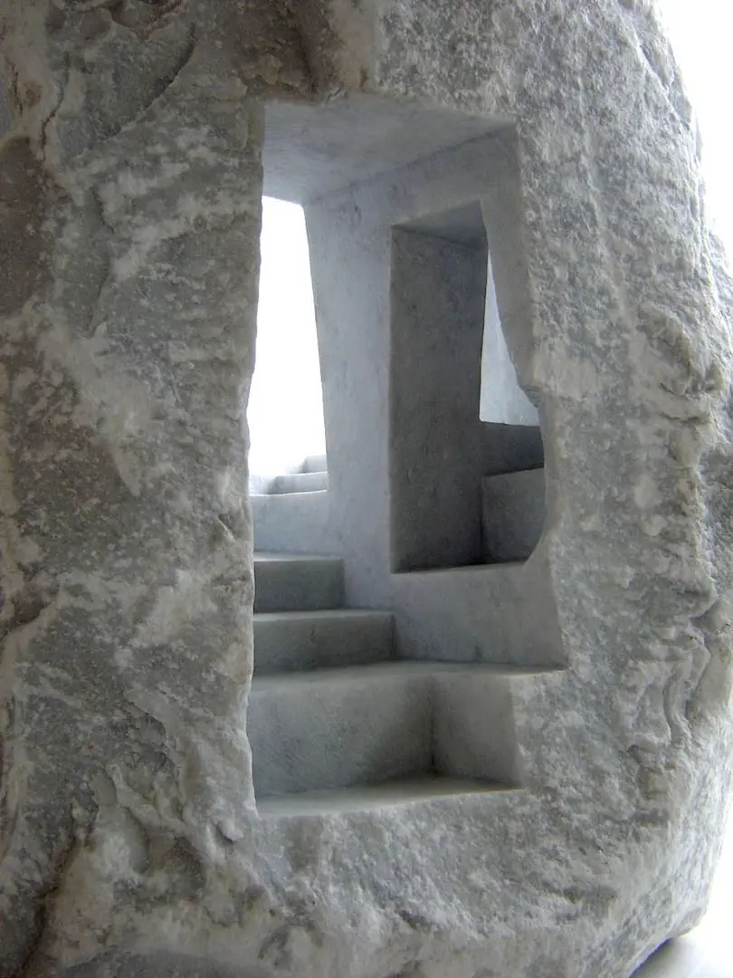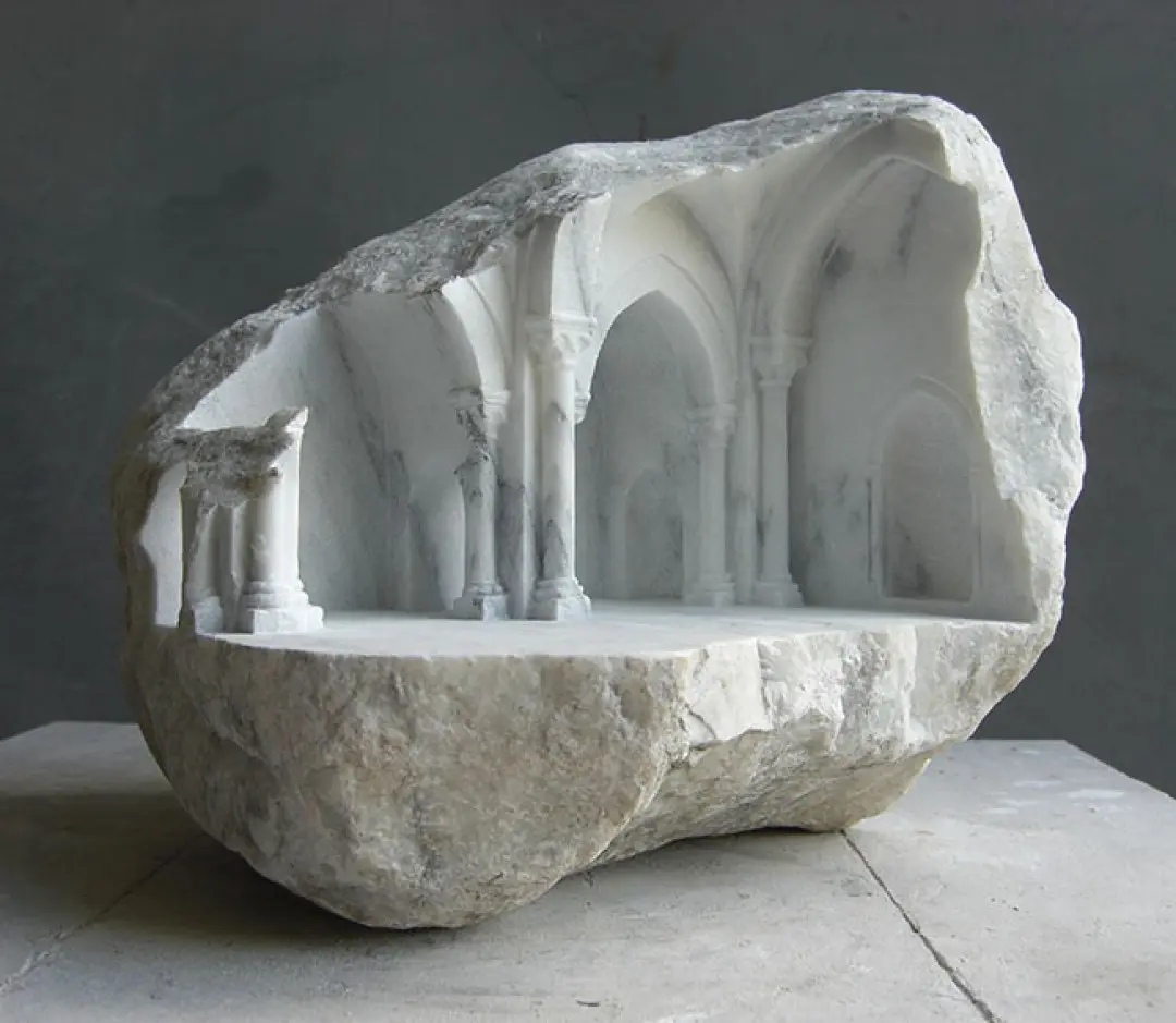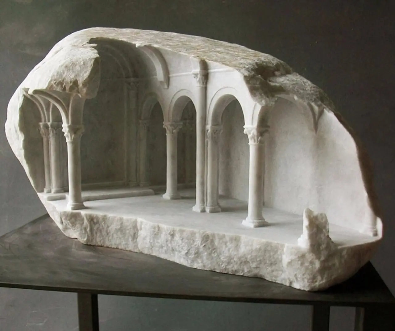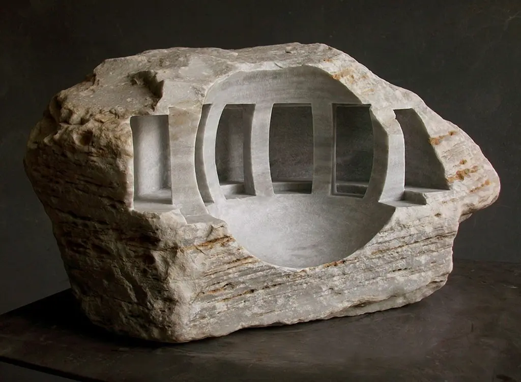 Một tác phẩm điêu khắc không nhất thiết phải là 1 khối đá đặc, mà Matthew Simmond đã thể hiện trong các tác phẩm của mình: Ông khoét rỗng các khối đá tạo nên nội thất của các công trình mỹ thuật kiến trúc xa xưa