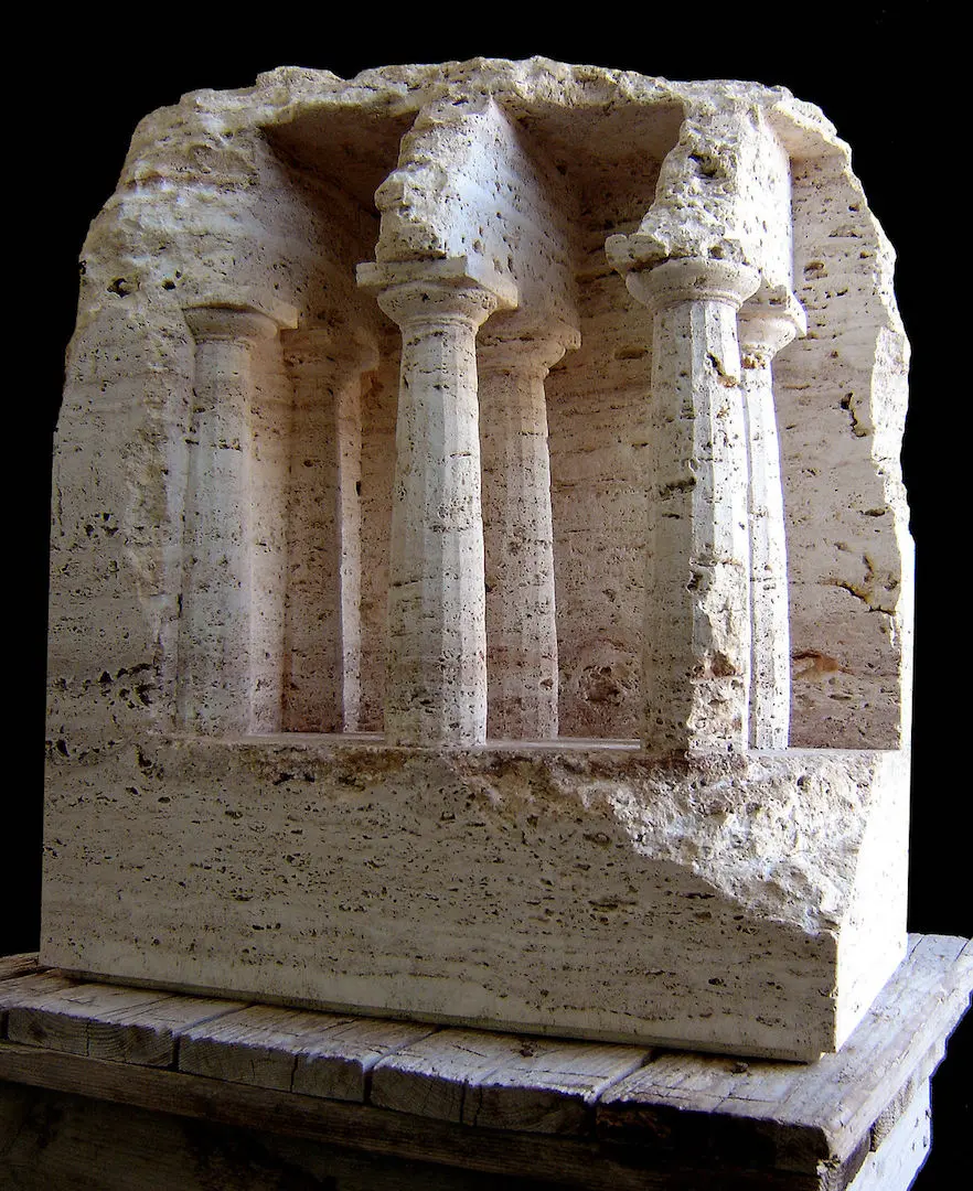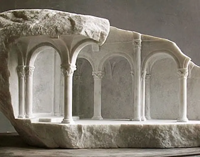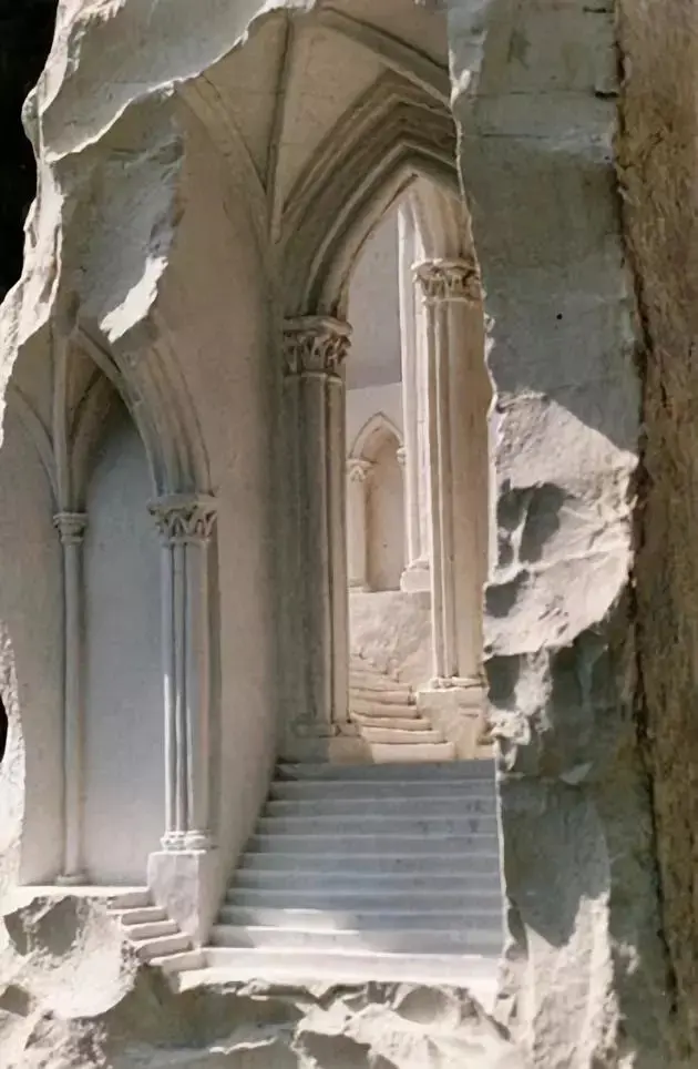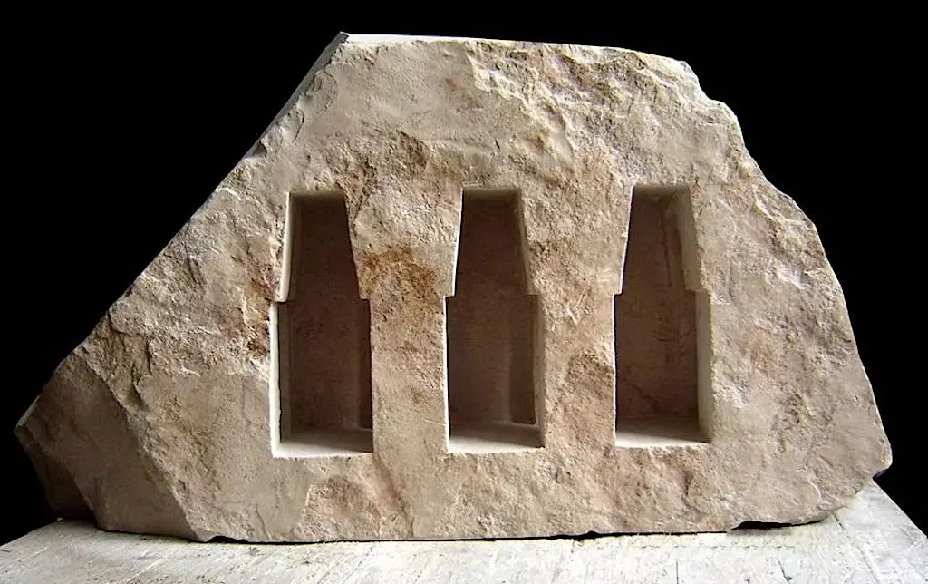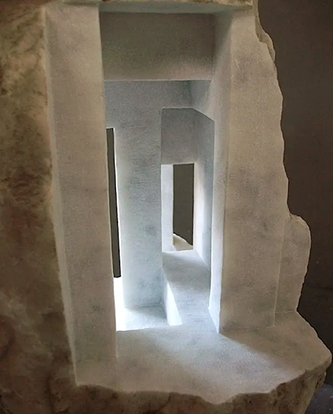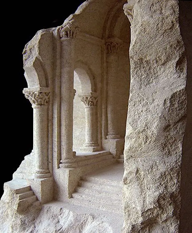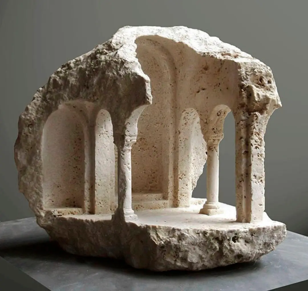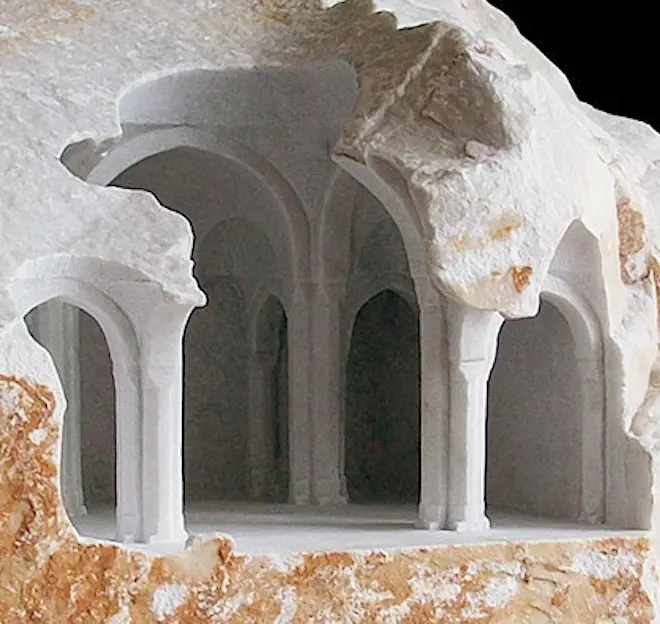 Một tác phẩm điêu khắc không nhất thiết phải là 1 khối đá đặc, mà Matthew Simmond đã thể hiện trong các tác phẩm của mình: Ông khoét rỗng các khối đá tạo nên nội thất của các công trình mỹ thuật kiến trúc xa xưa
