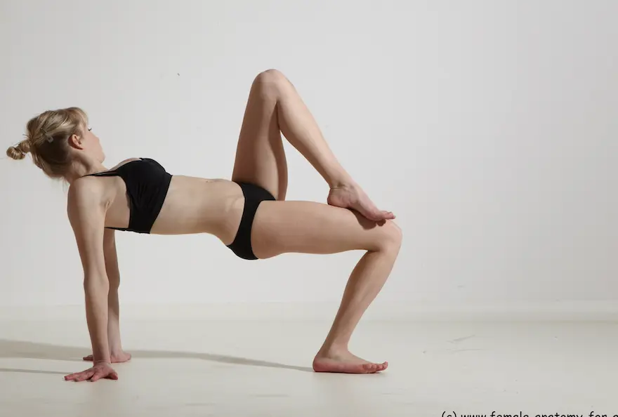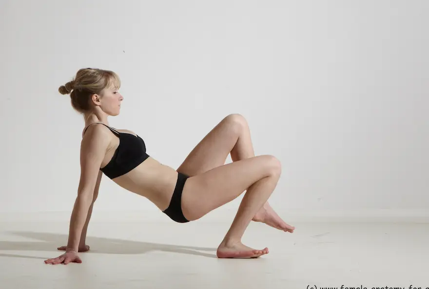 Các tư thế nằm gập người của người mẫu xinh đẹp Sophia với 4 góc nhìn cho họa sĩ và nhà điêu khắc.