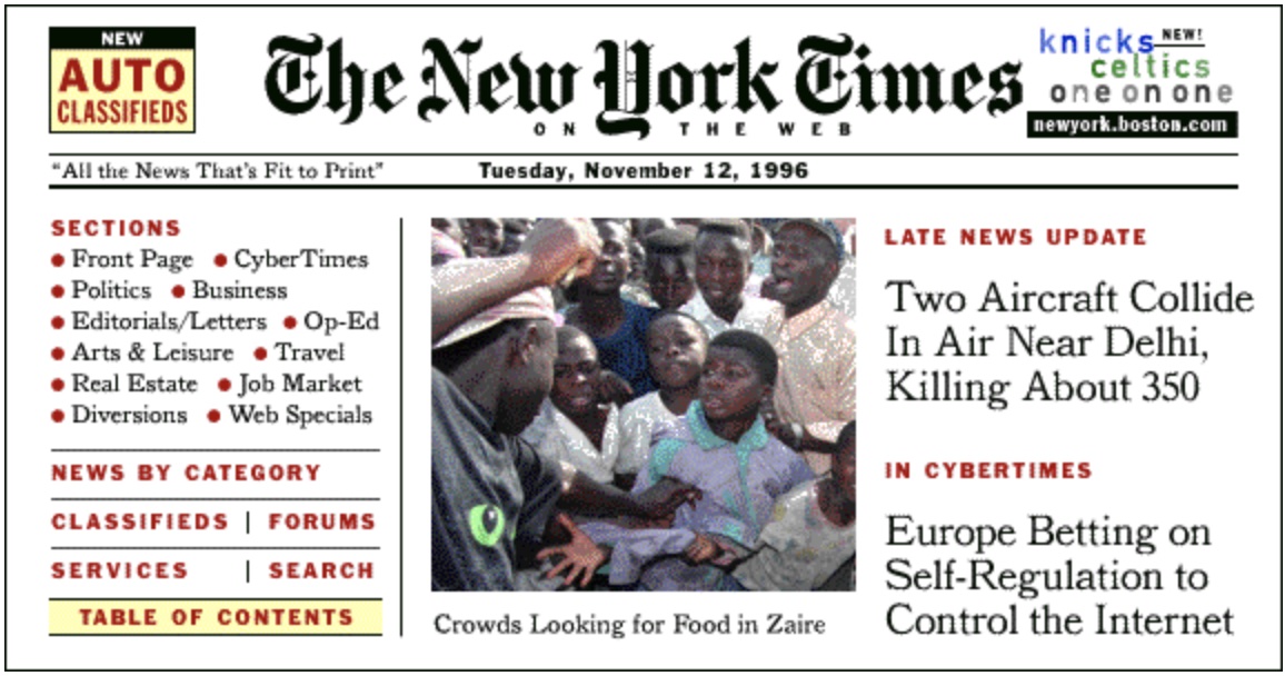 The New York Times website on November 12, 1996. ©