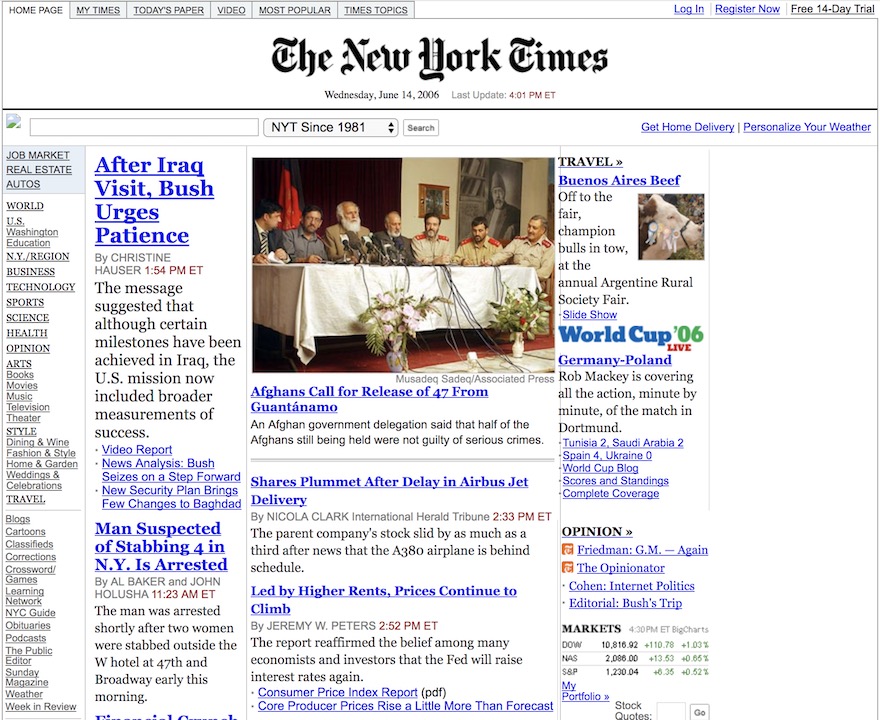 The New York Times website from October 13, 2006. ©
