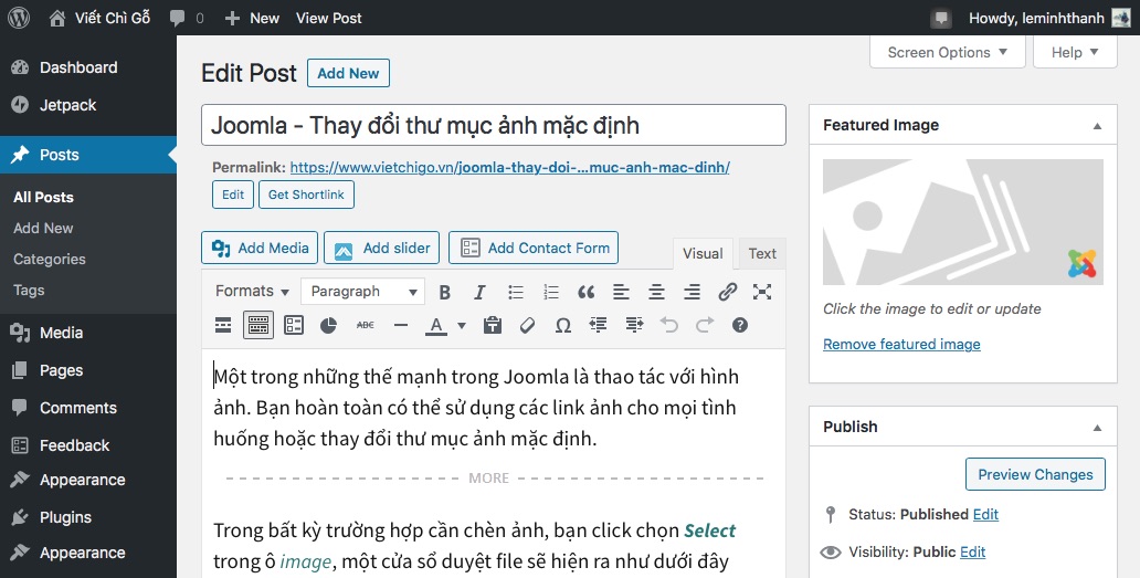 Thiết lập feature image trong dashboard