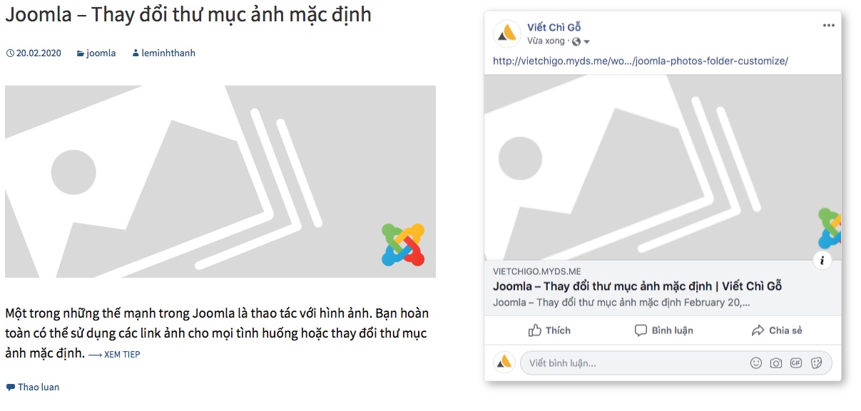 Ảnh trái và phải là feature image publish ngoài trang chủ và sau khi share link lên facebook