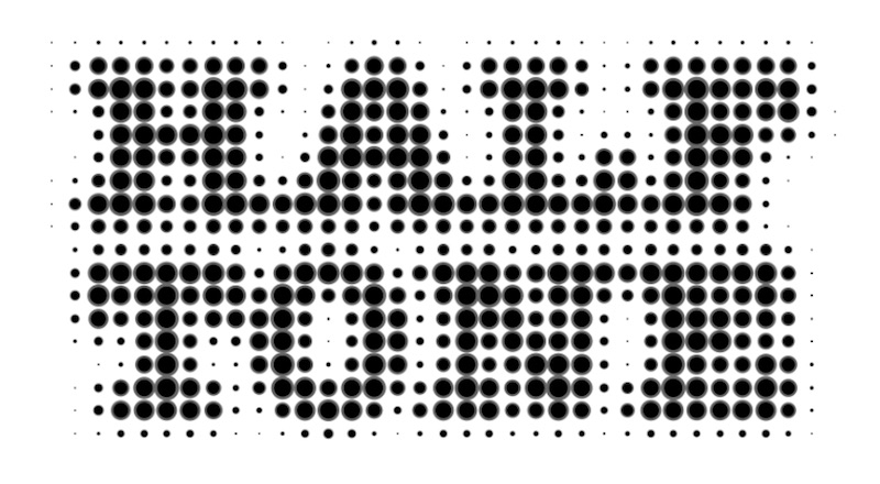 Điều đó có nghĩa là nếu bạn có chữ nhòe mờ Gausian Blur trên nền trắng thì ta có hiệu ứng Halftone tuyệt đẹp như dưới đây