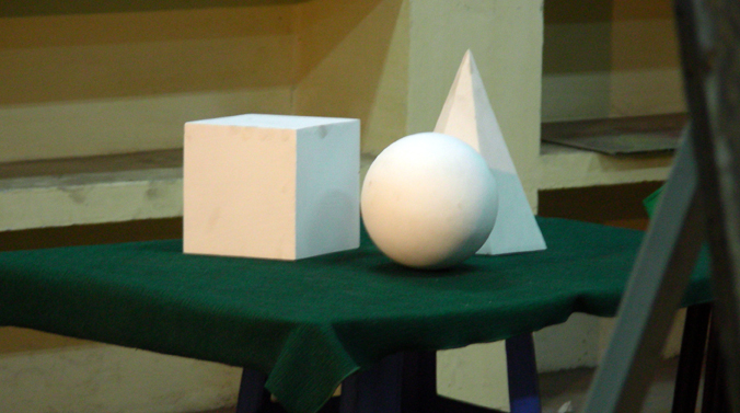 Việc đầu tiên, để vẽ cả cụm 3 khối chúng ta cần cân bố cục chúng trước cho vừa trang giấy vẽ và vẽ lần lược từng khối một