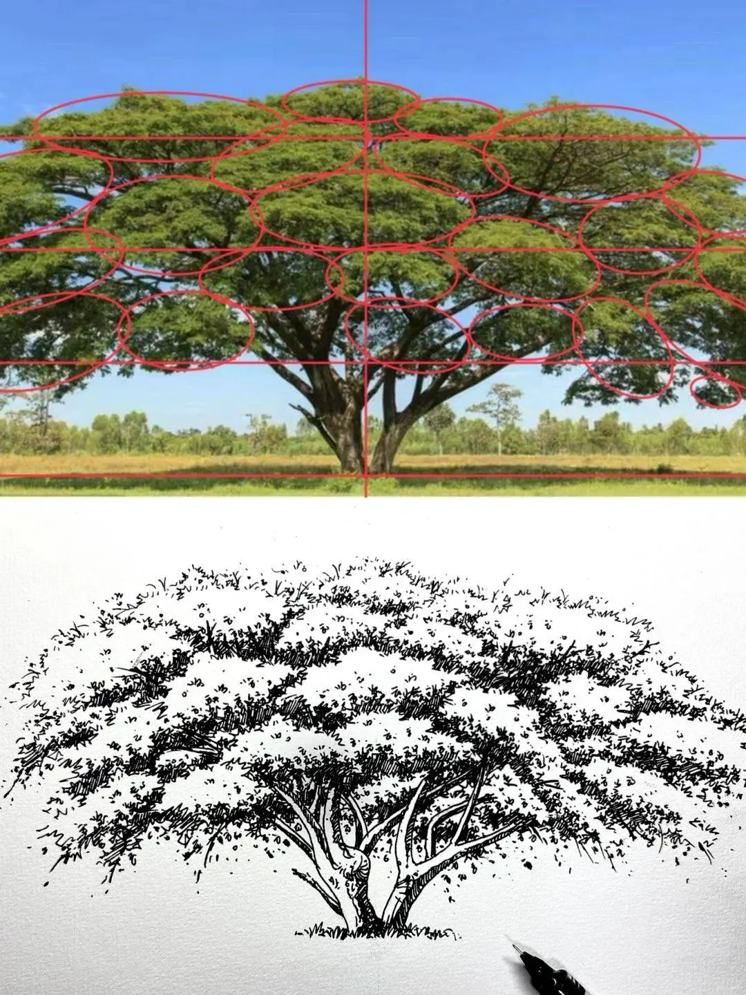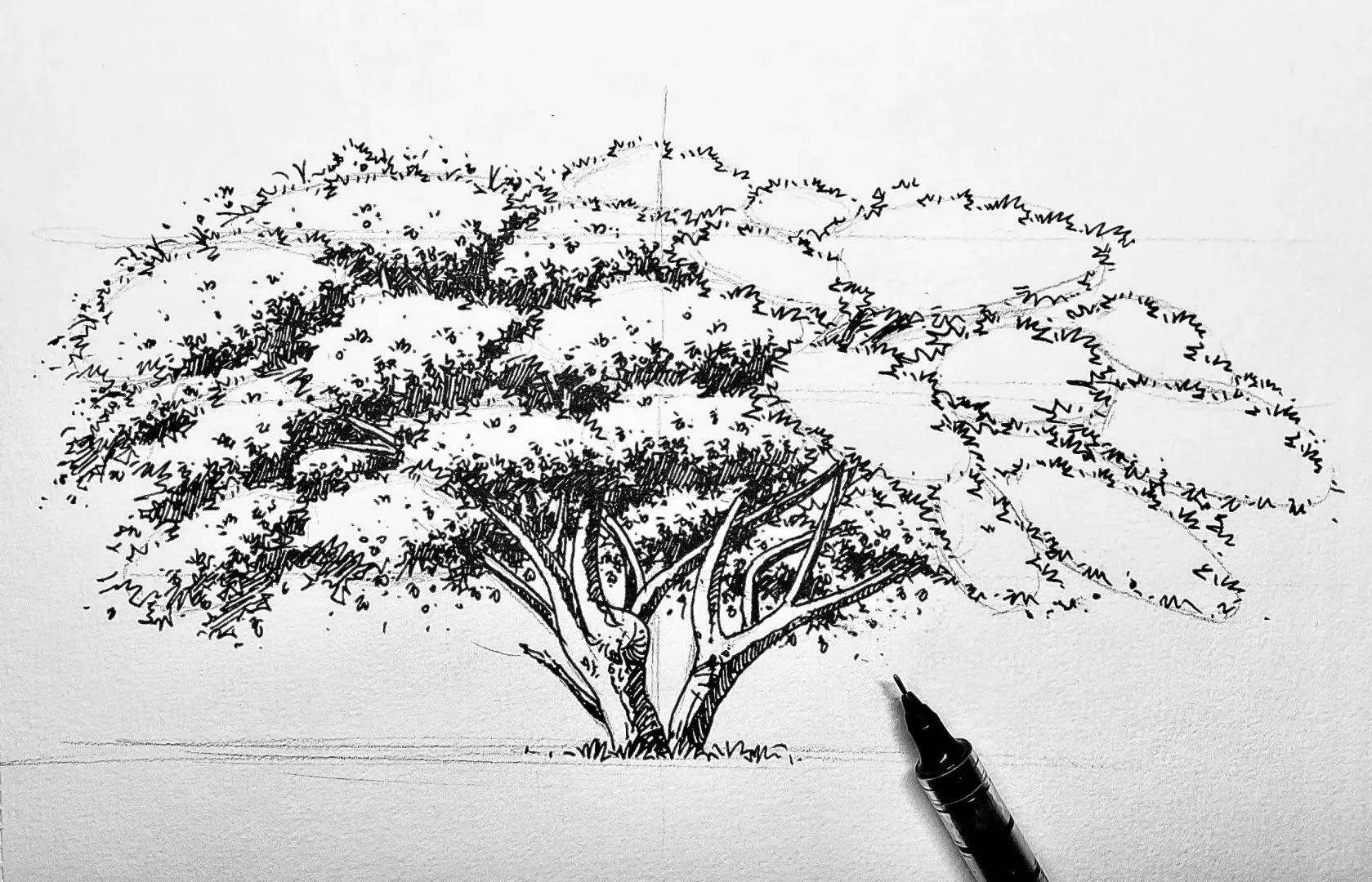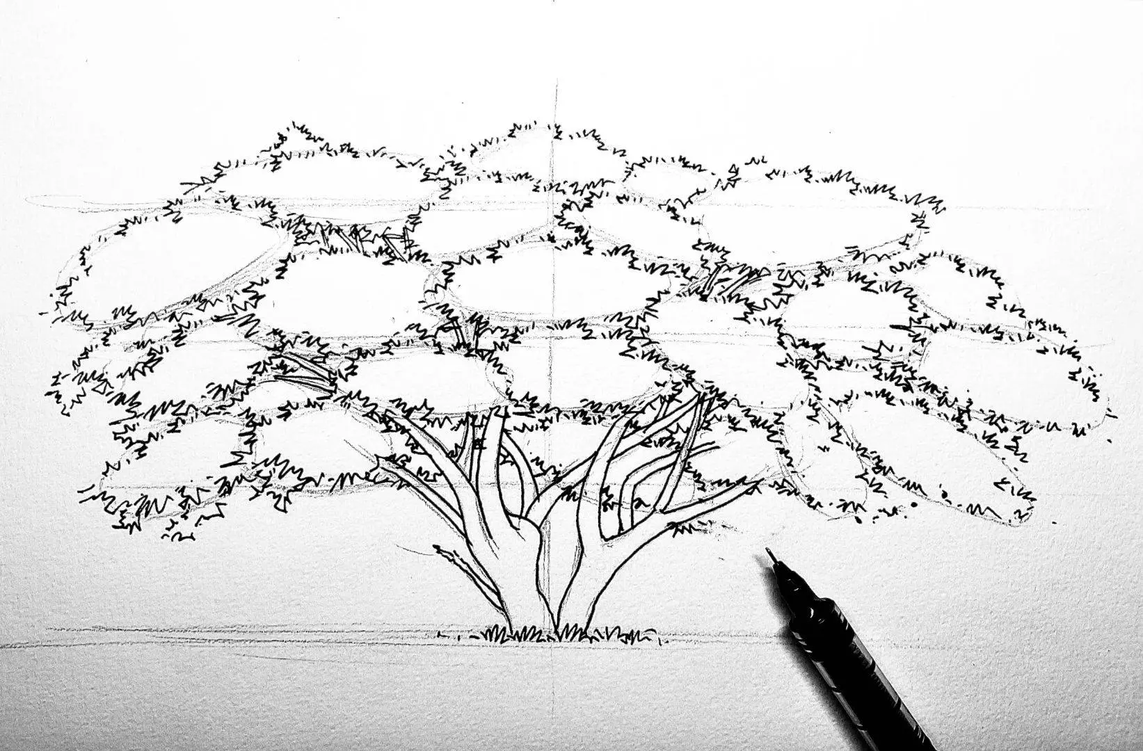 Các bước sketch 1 cái cây đại thụ
