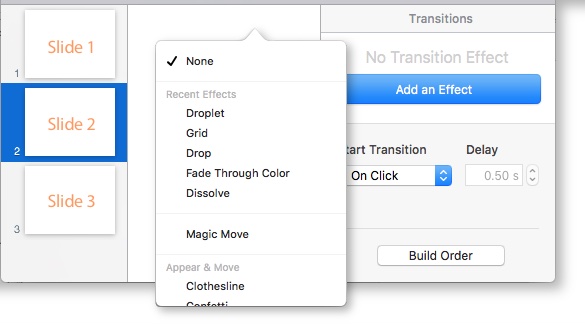 Keynote có bộ thư viện hiệu ứng các chuyển động phong phú, đẹp và lạ mắt. Bạn có thể áp chuyển động lên