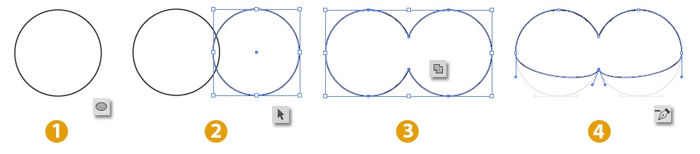 Bước 3: Dùng Selection tool V , quét chọn cả 2 đường tròn trên. Trong bảng lệnh pathfinder Ctrl_Shift_F9 chọn biểu tượng Union