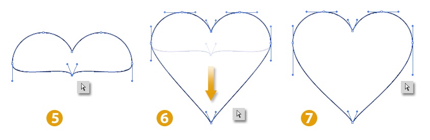 Bước 6: Dùng Direct Selection Tool A click chọn anchor giữa kéo xuống tạo chóp trái tim