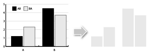 Biểu đồ sau khi ungroup để tách ra các cột và đồ thị, được tối giản nhất có thể để chỉ còn trục tung với các chỉ số, trục hoành và đường ngang trên cùng