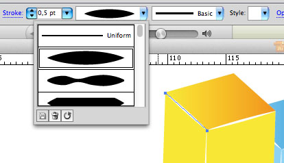 - Chọn màu cạnh mới tách là màu trắng, và chọn dạng stroke là Width Profile 1 (hình con thoi)