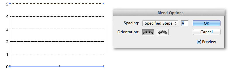 mở hộp thoại Blend option chọn như hộp thoại bên dưới, rồi click lên đường ngang trên và đường ngang dưới