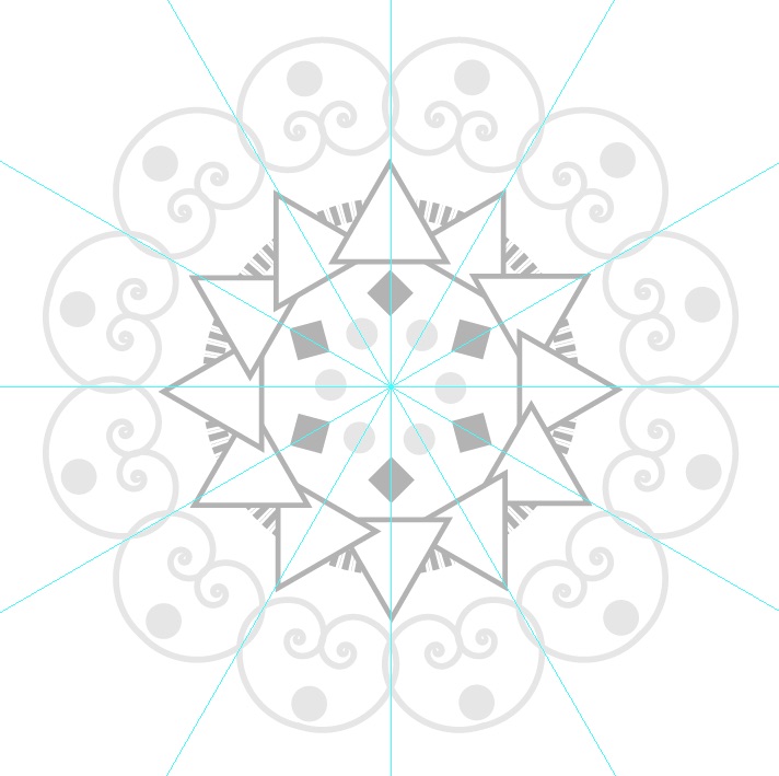 - Vẽ 1 đường guide đứng, nhân bản và xoay mỗi góc 30o