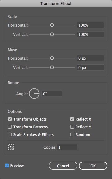 - Tạo thêm Transform Reflect. Click chọn layer Mandala 12 Reflect, Chọn Effect > Distort & Transform > Transform