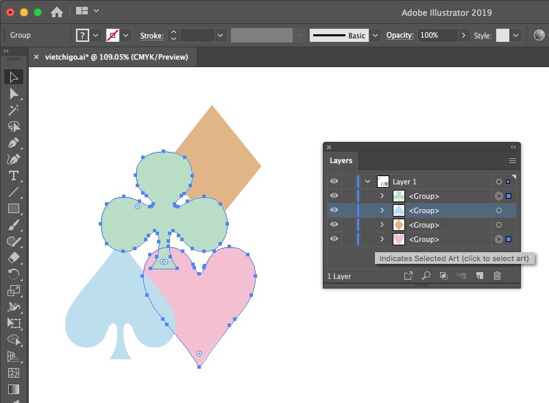- Chọn thêm hay trừ bớt đối tượng: Nhấn phím ⇧, rồi click phần "đuôi" layer
