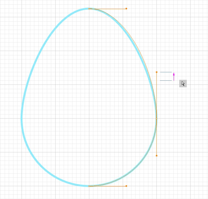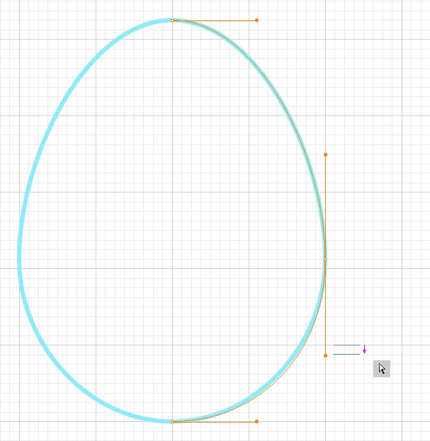 - Chưa hết, đến đây quả trứng vẫn còn kỳ kỳ.. tiếp tục kéo đầu tiếp tuyến của 2 điểm bên hông xuống 1 đơn vị