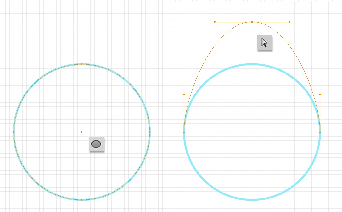 , giữ phím ⇧, di chuyển điểm trên cùng của đường tròn lên trên 10 đơn vị. Đa số các hướng dẫn đến đây là xong phần tạo hình