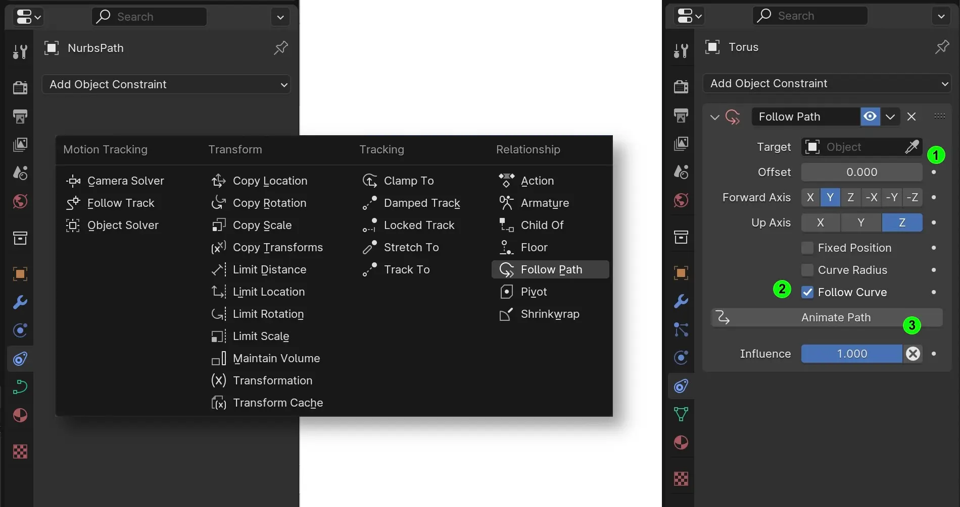 - Kiểm chọn Follow Curve, nếu muốn đối tượng chuyển động xoay theo đường curve