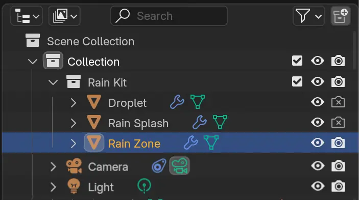 Sau khi cài đặt thì Rain Generator xuất hiện trong Outliner 3 thành phân