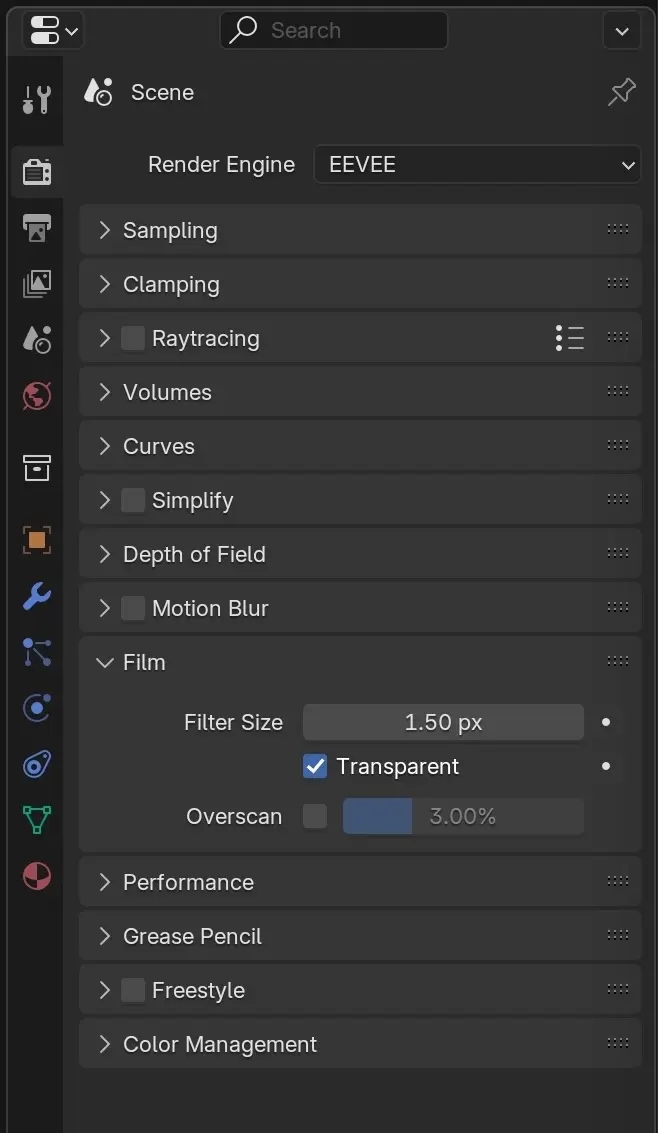 Cũng trong bảng lệnh Properties, nhưng thẻ Render. Kiểm chọn Transparent trong mục Film