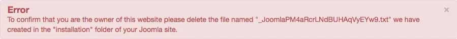 Lưu ý usename, password và database là các giá trị trong phần khai báo joomla ở hộp thoại thứ 2. Nếu mọi chuyện suôn sẻ sẽ xuất hiện yêu cầu delete file txt dưới đây để chắc chắn bạn là người cài đặt.