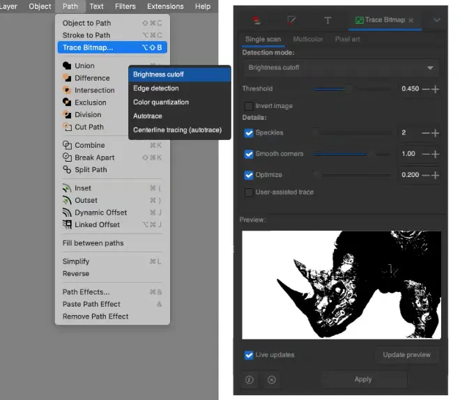 Chuyển từ ảnh sang 1 hình vector gọi là Trace, điều này chỉ có ở những phần mềm vector mạnh mẽ