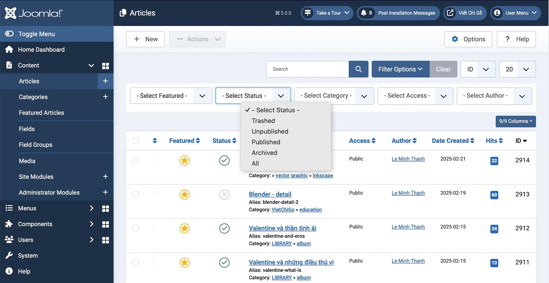 Vì trong Joomla có rất nhiều loại thùng rác cho nên sẽ không có 1 cái tag thùng rác cụ thể nào cho bạn truy cập. Nhưng khi biết được thì chúng lại "dễ cực kỳ". Ví dụ thùng rác cho Article, thùng rác cho Module, thùng rác cho Menu,... trong chúng chứa những thứ bạn delete tùy vào từng item.