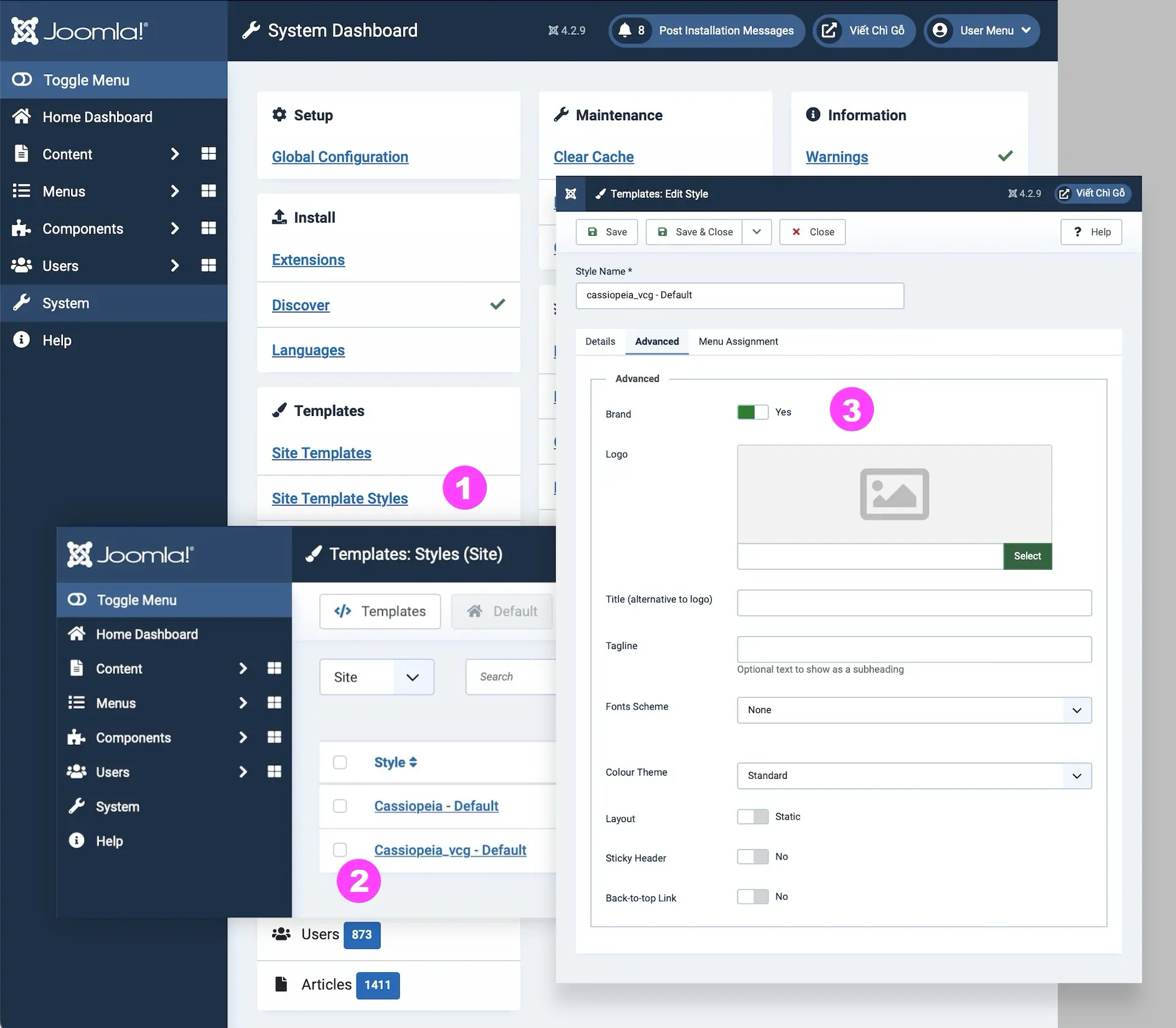 Cách tắt chữ cassiopeia trong template mặc định của Joomla