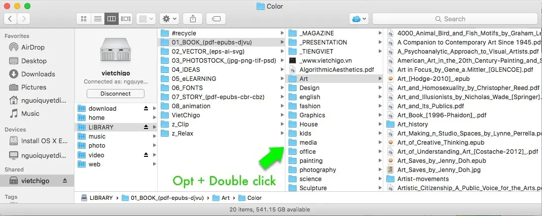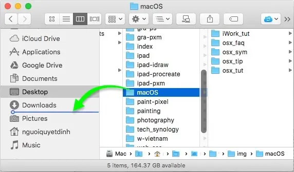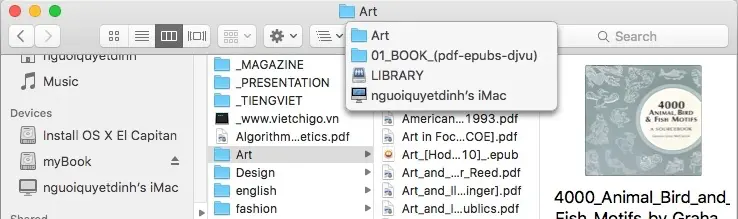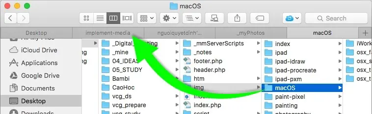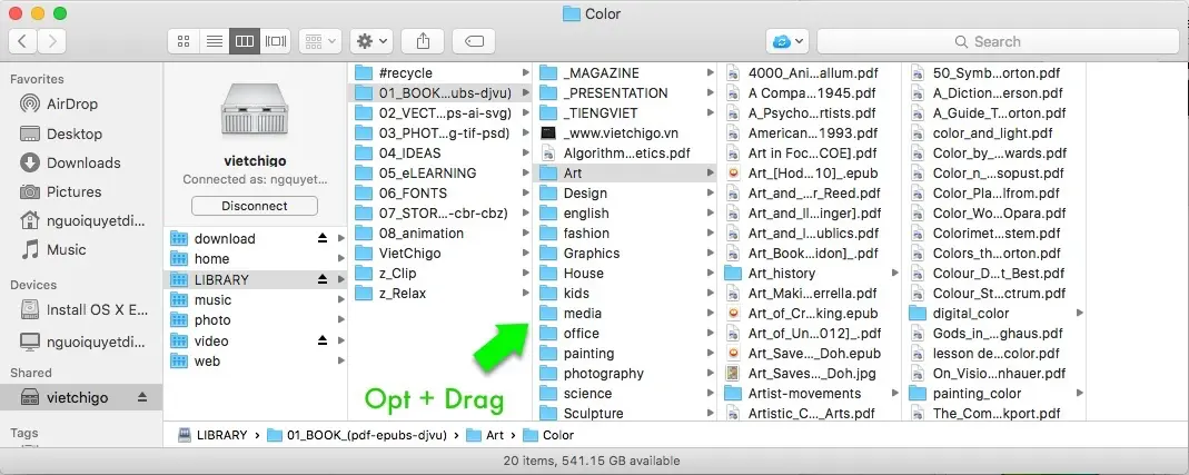 - COPY: Trong cùng 1 phân vùng (partition): kéo thả giữ thêm ⌥ . Khác phân vùng: kéo file từ phân vùng này vào phân vùng kia