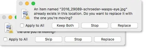 Sẽ có lúc bàn kéo 2 file cùng tên vào 1 chỗ mà cảnh báo k có chữ keep both, hãy nhấn Opt